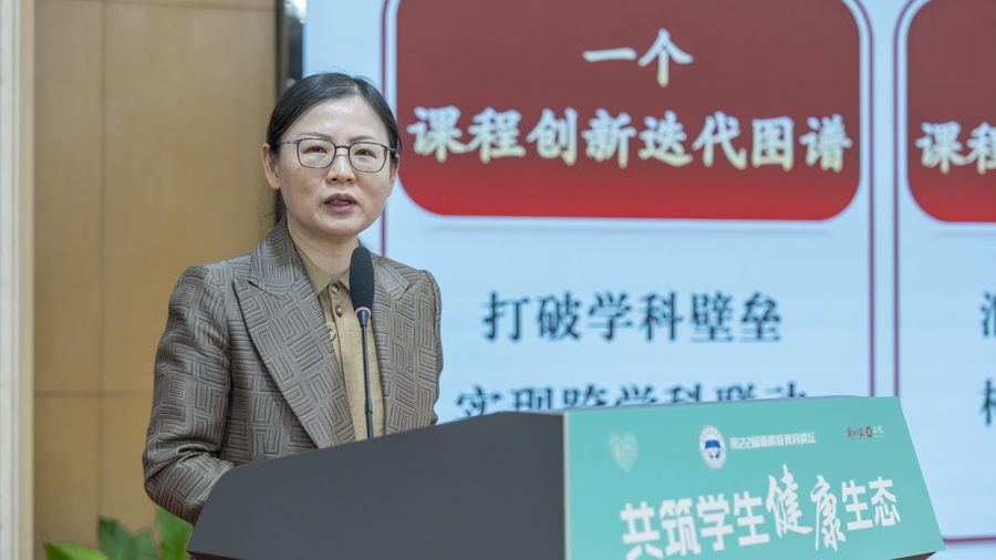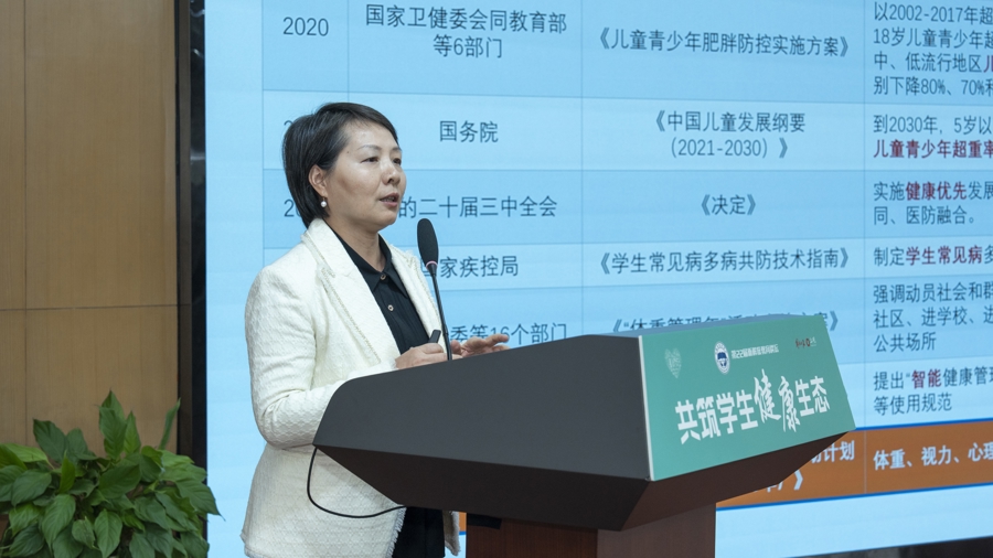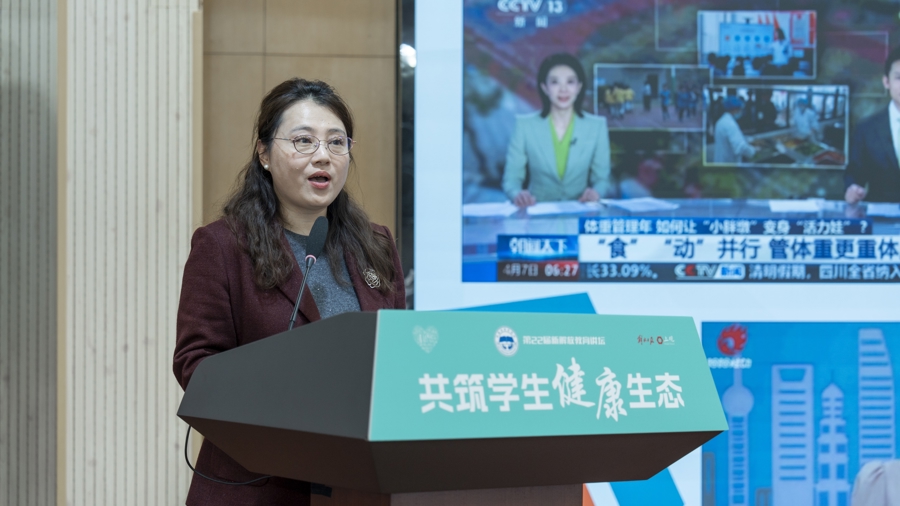 随后,上海交通大学医学院附属上海儿童医学中心副院长洪莉带来主旨报告。她从医学专业视角出发,结合临床案例,分析了当前儿童青少年面临的近视、肥胖、心理调适等健康问题,提出了科学干预建议,并强调了医疗资源与教育领域深度融合的重要性,为学校健康教育提供了专业支撑。
